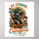 Design cor e pacífica apresentando uma cena de outono/outono com um leão majestoso e flores de outono. O texto de inspiração colorido diz: "Seja forte e corajoso. Joshua 1:9". Esse design está disponível em uma grande variedade de produtos.