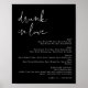 Este cartaz de menu de bebida de casamento "bebado no amor" impresso apresenta uma fonte escrita à mão e um design moderno minimalista com uma combinação cor branca e preto esbranquiçado. Altere facilmente a fonte e a cor de fundo para corresponder ao seu evento. Isto é perfeito para um casamento, chá, chá de panela, festa de noivado ou qualquer outro evento especial.