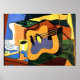 Pintura de Juan Gris, guitarra e garrafa, poster.