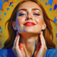"Kaela" - Padrão de um Passado. Este retrato assombroso sugere que o tempo está escrito na pele. Os azulejos em seu rosto são história e futuro ao mesmo tempo - cada um é uma decisão, uma cicatriz, uma verdade. Esta imagem sugere uma personagem que suporta a sua fraternidade com orgulho, colecionando cada borda afiada como armadura vestida com sabedoria e tristeza. O olhar é inesquecível.