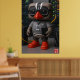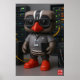 Kagu trabalhando no data center. Esta imagem é de uma figurina estilizada, parecida com um pássaro Yanbaru. Está vestido com uma roupa que sugere um personagem experiente em tecnologia, com uma camisa polo de cinza, shorts pretos com um padrão ondulado na barra, e calçados vermelhos brilhantes. A figura tem óculos grossos, de formato preto e um padrão listrado preto e branco no topo da cabeça, parecendo um penteado. Ele está segurando um comprimido preto na mão esquerda e vestindo um pátio com um crachá ao redor do pescoço. A figura está em pé no que parece ser uma sala de servidores ou um data center, com racks de luzes piscantes visíveis em segundo plano. O estilo geral lembra a figura do pássaro yanbaru kuina de okinawan! devido à sua grande cabeça e corpo pequeno, embora este tenha uma textura mais realista. No canto inferior direito da imagem, há um carimbo vermelho com o que se parece com os caracteres japoneses.