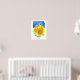 A poster decorated with a western meadowlark bird in a field of bright blooming sunflowers in summer over the state shape in royal blue drawn with pen and ink and painted with watercolor. Inspired by the state bird and state flower of Kansas. Great for college dorm room decor or anyone who loves "The Sunflower State!"