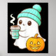 Poster Kawaii Ghost With Pumpkin Coffee Cozy Halloween Au