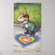 Poster Kawaii trex arco-íris ouve na calçada