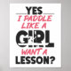 Esse design de remar de kayak engraçado lê "sim eu remo como uma garota quer uma lição". É excelente para dia de as mães ou dia de os namorados.