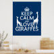 This reads 'Keep Calm and Love Giraffes' in the traditional style. Two proud tall giraffes stand on either side of the words. It's one of my most popular designs, both as a t-shirt and on many other products. Makes great gifts for anyone who loves giraffes. And everyone loves giraffes.