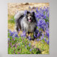 Um belo beijo sorrindo no meio da flor da lupina primavera.