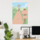 Um garoto acenando enquanto caminhava em uma trilha. Esta design parece realmente eficaz nestes Poster