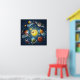Uma cena espacial brilhante e alegre com personagens, planetas, estrelas, cães, foguetes e muito mais!