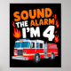 Kids Sound The Alarm I'm 4 Years Old 4th Birthday Firefighter