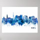Blue Watercolor Skyline of Kiel, cidade portuária na costa alemã do Mar Báltico