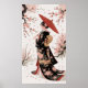 Este poster de arte de parede impressionante apresenta uma delicada pintura digital de uma mulher graciosa em um quimono preto, rolando através de um jardim sereno e florescente. Ela segura um belo parasol vermelho de papel, que adiciona um pop de cor impressionante contra os tons suaves e mudados do fundo. O quimono preto é o ponto focal, adornada com padrões florais intrincados, grandes, cor-de-rosa e dourados que criam um sentido de harmonia elegante. Seu cabelo está estilizado em uma lata elegante com flores, e toda a cena é enquadrada pela queda de pétalas floridas de cereja e ramificações florescentes, dando à peça uma qualidade tranquila e etérea. O estilo artístico combina uma estética digital moderna com os tradicionais motivos japoneses, fazer-a como uma peça perfeita para qualquer pessoa que pretenda adicionar um toque de tranquilidade, beleza e sofisticação à sua decoração doméstica.