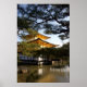 Um poster de Kinkaku-ji (金 閣 ou O Templo do Pavilhão do Ouro), também conhecido como Rokuon-ji (鹿 寺 ou o Templo do Jardim dos Morros), em Quioto, no Japão. É um templo budista de Zen, com seu complexo de jardins um excelente exemplo de design de jardinagem de Muromachi. uma era clássica de design de jardim japonês. Kinkaku-ji é um dos Monumentos Históricos do Antigo Patrimônio Mundial de Kyoto.