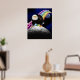 A viagem do espaço nunca foi tão fabulosa! Este legal e gatinho poster representa uma águia-careca americana em pé na lua, com um arco-íris estrelado vindo da Terra. É uma homenagem divertida à NASA e à inovação dos EUA em viagem espacial, excelente para decoração dorsal, quartos infantis ou arte peculiar de escritório. Comemore os pousos lunares com uma divertida e moderna colagem.