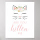 Poster Kitten Sinal de Aniversário Face de gatinho Floral
