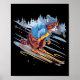 Poster Kitty skiing down a snowy slope funny