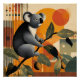 Koala sitting in a tree branch with colorful abstract art background.