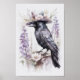 Poster Krähe Rabe Crow mit Hut und Blumen Watercolor