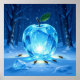 Ein funkelnder Apfel aus reinem Kristall liegt eingebettet im weichen Schnee. Um ihn herum tanzen leuchtende Glühwürmchen, die mit ihrem warmen Licht das frostige Blau durchbrechen. Ein magisches Zusammenspiel aus Kälte und Licht, Natur und Fantasie – wie ein Schatz aus einer anderen Welt.