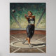 Uma poderosa pintura a óleo de Art Deco que mostra um médio-spin de garganta fêmea, sua forma geométrica dinâmica e estilizada esculpida por uma dramática iluminação chiaroscuro contra um fundo absurdo e absurdo.