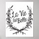 La vie est belle - A citação francesa em uma coroa, o louro floral. Tipografia negra.