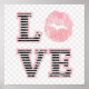 Este design apresenta um conjunto pastel de lábios e AMOR em um padrão listrado preto e branco.