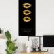 Poster elegante simples com nome/texto personalizado e grande brilho dourado brilhante metálico como lábios em fundo preto sólido. Adequado para um legal e sofisticado olhar de negócios glamouroso, para salão de beleza, maquiador, cosmetólogo, blogueiro de beleza, distribuidor de batom.