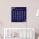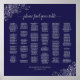 Este lindo gráfico de assentos de casamento apresenta texto pálido de cinza em um fundo azul marinho com atribuições de assentos para 200-240 convidados. Ele apresenta um simples na moda e elegante design com filigre de prata de folha decorativa de ornamentado nos cantos. O título está escrito em caligrafia de script de rico e diz: Por favor, encontre sua mesa.