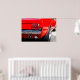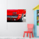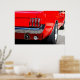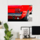 Fotografia colorida de alta definição da luz do lado direito/traseiro de um carro muscular americano vermelho.