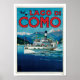 poster de viagens vintage do lago Como, Itália, mostrando um navio a vapor de lago com montanhas ao fundo.