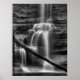 Fotografia branca e negra da cascata "Lake Falls" no Parque Estadual de Matthiessen, Illinois