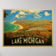 Esta bela cena do lago do lago Michigan diz "A Grande Beleza da Natureza". Folhas de queda e o verde azul do lago Excelente com árvores a arrancar das bordas.