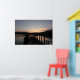 Sunset com píer e barco no lago Windermere, Cumbria, Reino Unido