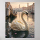 Arte de cisne de mozzarella serena apresentando um cisne gracioso esculpido a partir de dobras de queijo branco sedoso, destaques de pérola, texturas cremosas e penas elegantes em forma de fita. Deslizando por uma lagoa veneziana ao nascer do sol com gôndolas, pontes, fachadas pastéis, névoa, pétalas e reflexos dourados, este design de ave de fantasia luxuosa parece romântico e atemporal. Perfeito para cozinhas, salas de jantar, decoração italiana, casamentos, interiores elegantes ou colecionadores de arte animal refinada.