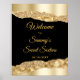 Este elegante e glamouroso e doce sinal de boas-vindas apresenta lágrimas douradas com brilho de fundo preto. O texto combina o script manuscrito e as fontes sans serif modernas para um aspecto elegante e sofisticado.