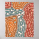 Eine Illustration die auf dem Malstil der australischen Ureinwohner, den Aboriginal, basiert und eine Landschaft vor der Besiedelung darstellt. Uma ilustração baseada no estilo original da pintura de pontos que retrata a paisagem antes do assentamento.