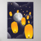 Lanternas do Céu Chinês contra uma bela lua de cheio à noite.