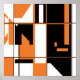Recorte os tamanhos de quadros padrão ou sua própria preferência pessoal (disponível em tamanhos pequenos a grandes de várias proporções e diferentes tipos de papel). Apresentado é um design ousado, geométrico e abstrato em formas laranja e preta sobre um fundo branco. Uma aparência otimizada e contemporânea com elementos retrorreflectores para casa e espaço de trabalho.