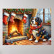 Uma obra de arte natalina aconchegante com um majestoso cão Bernês da Montanha sentado ao lado de uma lareira radiante adornada com meias e luzes de Natal cintilantes. Esta cena festiva de férias captura lindamente a natureza gentil e leal do cão Bernês da Montanha e o amor pela família, tornando-a uma adição ideal à decoração de qualquer lar de amantes de cães. Celebre a calidez e a magia da temporada com esta emocionante obra de arte inspirada em animais de estimação.
