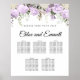 Beautiful blush purple roses and dangling greenery create a lush borders at the top of this floral seating chart. The wedding couple names are written in a classic script font. This elegant seating chart is part of the Violette collection that contains signs, programs, menus, place cards and table decor that let you easily and affordably personalize your wedding ceremony and reception.