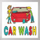 Carro Washing design mostra a limpeza de carros por dois especialistas em máquinas de lavar. Uma usa mangueira de pressão para limpar a sujeira e a outra usa esponja antiquada, água de sabão e duro.