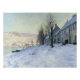 "Lavacourt, Sun and Snow" é uma representação cativante de uma paisagem de inverno. A cena captura a vila de Lavacourt, localizada ao longo do rio Sena, sob um cobertor de neve, com o sol lançando uma luz quente e ouro sobre a paisagem gelada. A pintura retrata um campo coberto de neve com algumas árvores dispersas e uma visão distante dos prédios da vila, parcialmente obscurecida pelo névoa. A luz solar reflete sobre a neve, criando um efeito de shimmering e aumentando o contraste entre a neve branca nítida e o céu quente e brilhante. Escovas soltas e paleta de cores vibrantes trazem um senso de movimento e vida para a tranquila cena do inverno, destacando a interação entre luz e sombra. A pintura exemplifica a habilidade de captar a beleza serena da estação de inverno e as sutis nuances de luz e cor em uma paisagem.