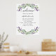 Fundo branco elegante, decorado com flores de lavanda, flores e verde de eucalipto. Personalize e adicione seus nomes e sua linha do dia do casamento.
