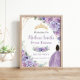 Personalize essa placa de boas-vindas da Quinceañera / festa de aniversário fácil e rapidamente, basta pressionar o botão personalizá-la para reorganizar e formatar o estilo e a colocação do texto. Esta decoração de sinais apresenta sofisticados sotaques roxos, lilás, florais de lavanda e dourados. Todo texto é editável! Excelente para Quinceañera, doce 16, festa de aniversário, chá de panela, Natal / Batismo e muito mais! Itens correspondentes disponíveis no repositório! (c) O feliz Cat Studio.