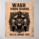 Poster Lave Suas Mãos ou Eu Amaldiçoo Seu Banheiro Engraç