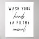 Adicione um toque de humor e um lembrete amigável ao seu banheiro doméstico ou de escritório com este poster de "Lave Suas Mãos Ya Suja Animal". Apresentando uma mensagem divertida e divertida, este poster é projetado para encorajar a limpeza e a higiene enquanto adiciona um toque de personalidade à sua decoração. A poster é também uma ideia de presente excelente para amigos e familiares, especialmente aqueles com bom senso de humor. É perfeito para aniversários, festas de limpeza doméstica, ou qualquer ocasião em que você queira dar um presente que seja prático e divertido. Esta poster de "Lave Suas Mãos Ya Suja Animal" é uma forma excelente de trazer um sorriso para sua face toda vez que você visita o banheiro. É também uma maneira divertida e divertida de lembrar a todos que usam seu banheiro para praticar boa higiene.