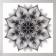 Delicate parallel lines form graceful, overlapping petals that radiate outward in perfect symmetry from a luminous central star. The intricate floral layers and flowing curves create a sense of depth and serene balance on a clean white background. This elegant black-and-white line art design invites calm focus and creative coloring while adding timeless sophistication to canvas prints, posters, throw pillows, journals, phone cases, yoga mats, wall art, and mindful home décor.
