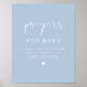 Este sinal de 'orações para o bebê' do chá de fraldas apresenta uma fonte manuscrita e moderna design minimalista com uma combinação de cores azul e branca vibrante. Altere facilmente as cores e edite o texto *maioria* para atender às necessidades da sua ocasião. Esta placa é perfeita para seu primavera, garoto e chá de fraldas de jardim.