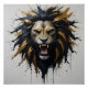 Este poderoso retrato de abstrato capta a cabeça de um leão rugido em arrojados e expressivos pincelões de preto profundo, ouro rico e cinzas enfumaçados. O homem explode em linhas ferozes e varridas que se esticam sobre um fundo texturizado branco estrelado, força radiante e energia não domada. Com os olhos intensos reproduzidos em detalhes impressionantes, a peça equilibra a emoção crua com um toque de realismo - perfeito para decor de declaração e designs que canalizam coragem, poder e espírito selvagem.