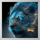 Poster Leão de Fogo Brilhante Cósmico Azul